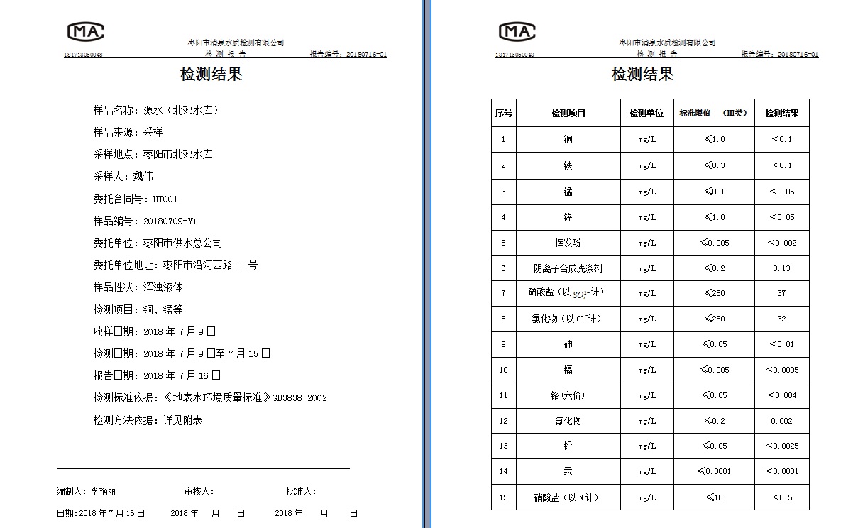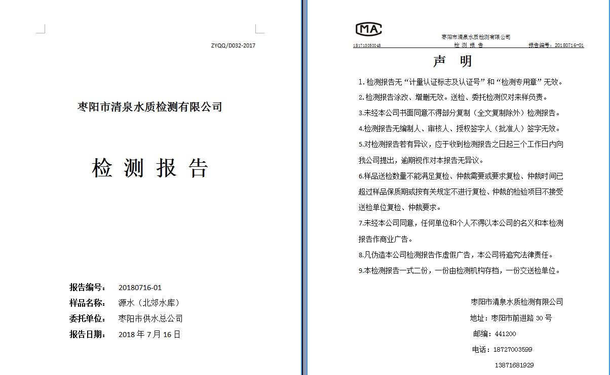 通讯员: 枣阳市清泉水质检测有限公司