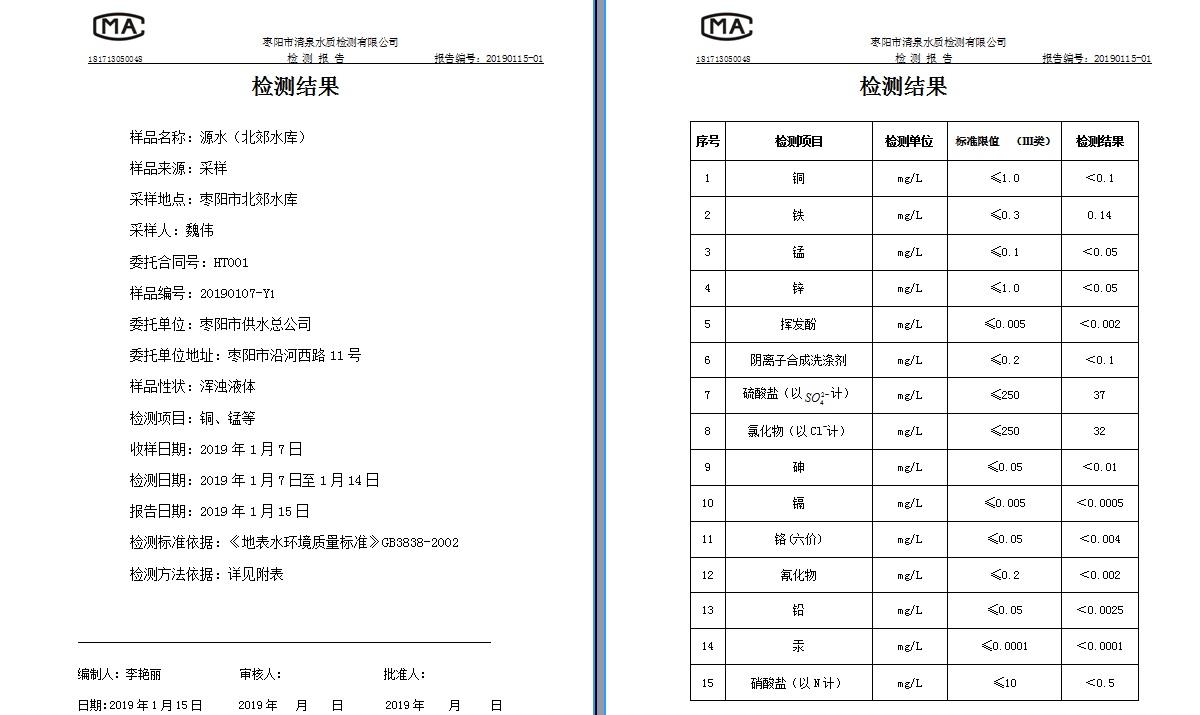 通讯员: 枣阳市清泉水质监测有限公司
