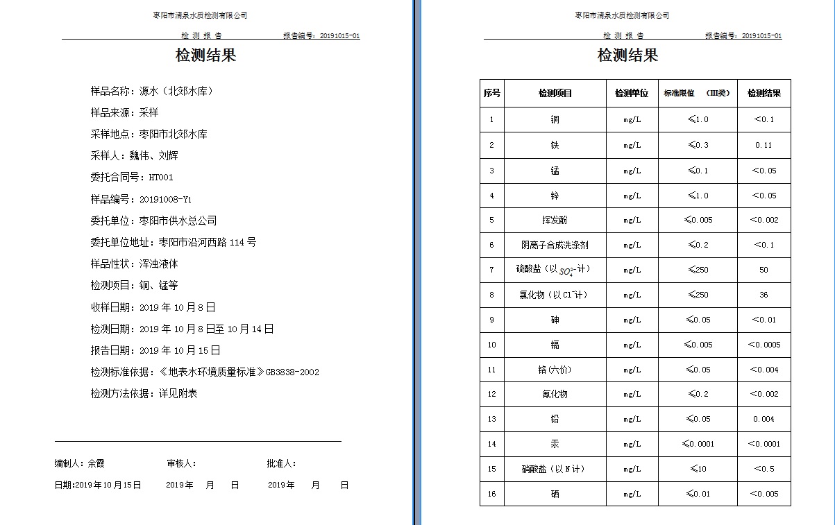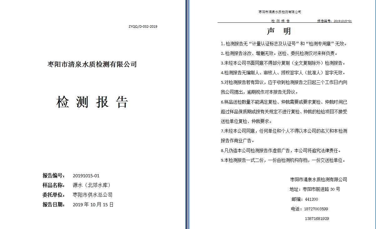 通讯员: 枣阳市清泉水质监测有限公司