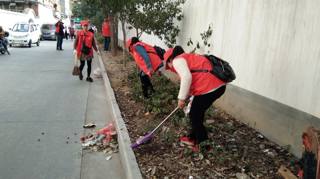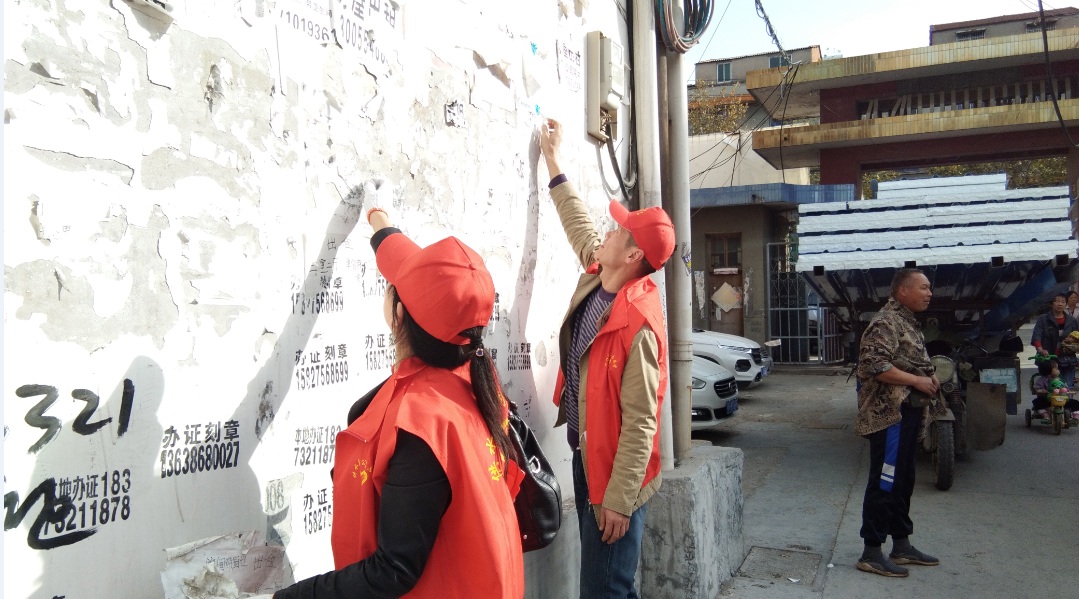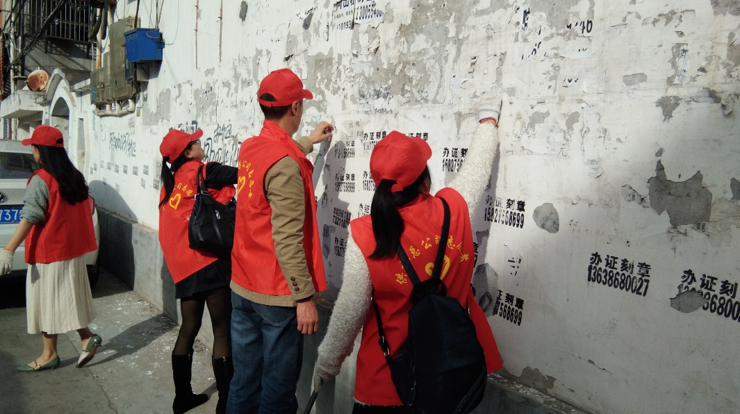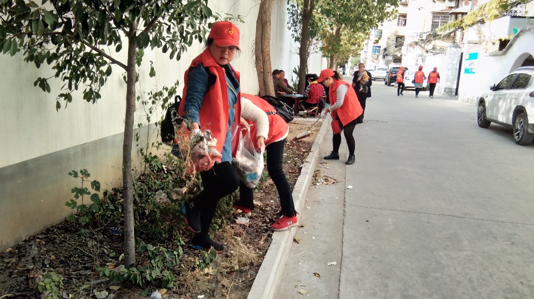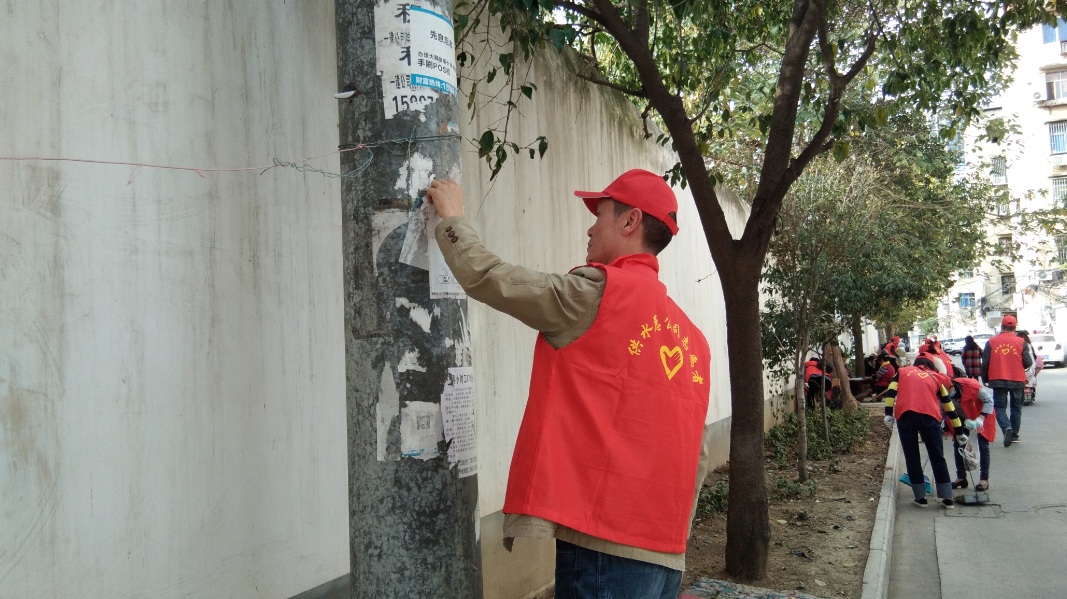 当天下午,20名身着红马甲、头戴小红帽的志愿者手持扫帚、灰撮、铁锹等工具来到原市建筑总公司院内,对该小区干道和绿化带内的树叶、烟头、包装袋等垃圾进行捡拾清扫,对住户丢弃于路边的旧沙发、旧床垫、装修废料等杂物进行转移堆放,对沿路墙壁、电线杆上张贴的小广告进行铲除清理,营造干净整洁、有序宜居的生活环境。