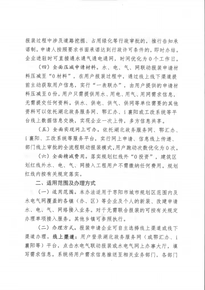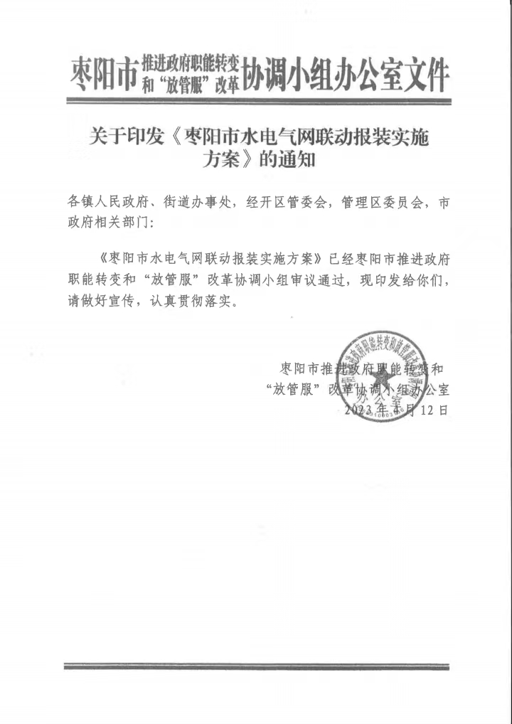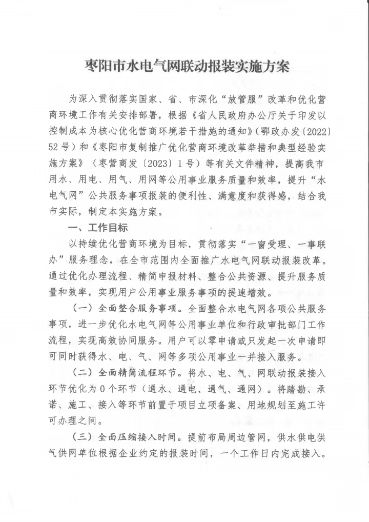 枣阳市水电气网联动报装实施方案