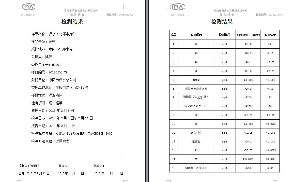 通讯员: 枣阳市清泉水质检测有限公司