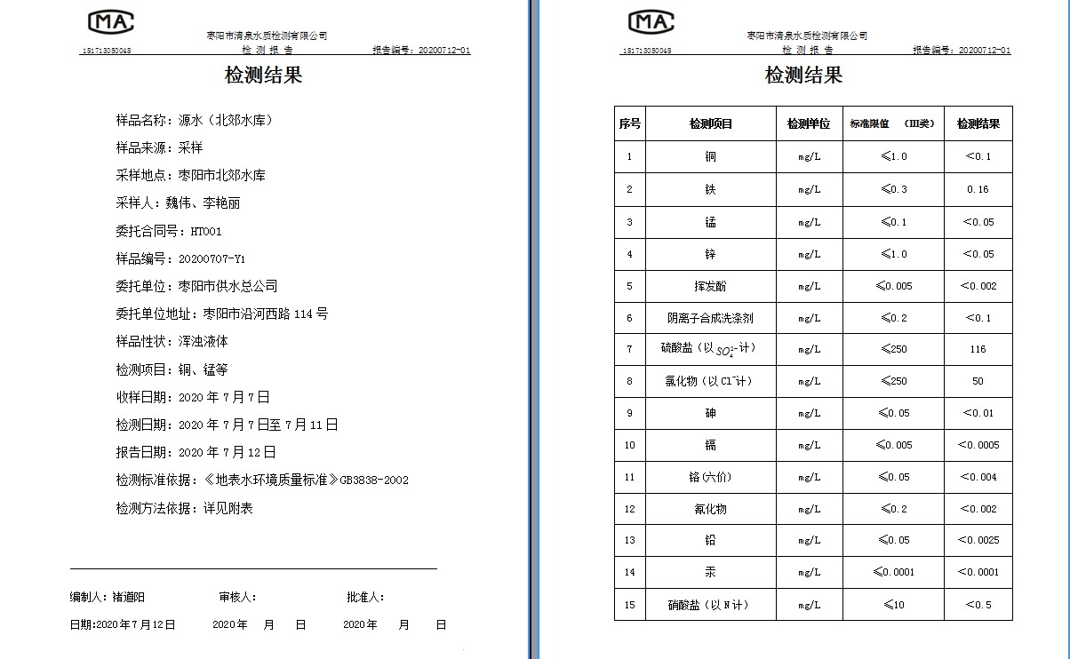 通讯员: 枣阳市清泉水质监测有限公司