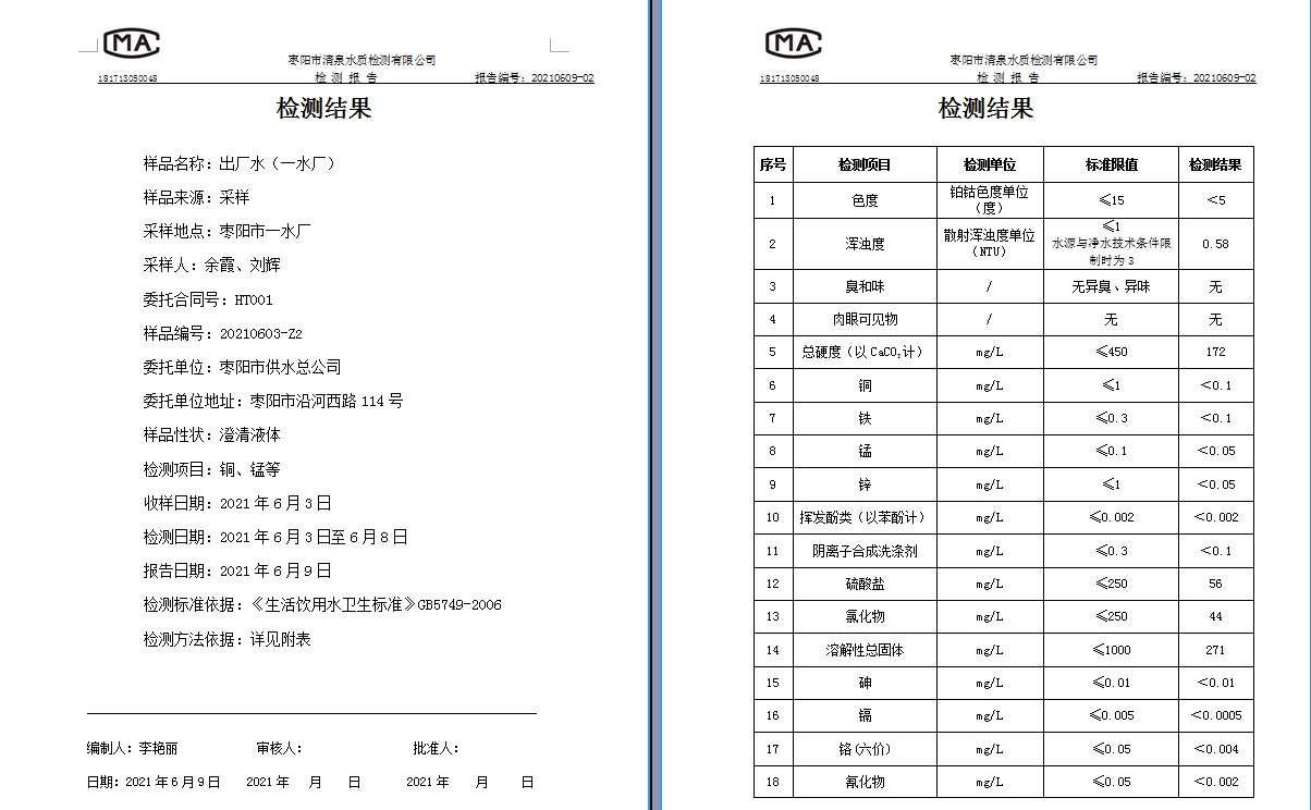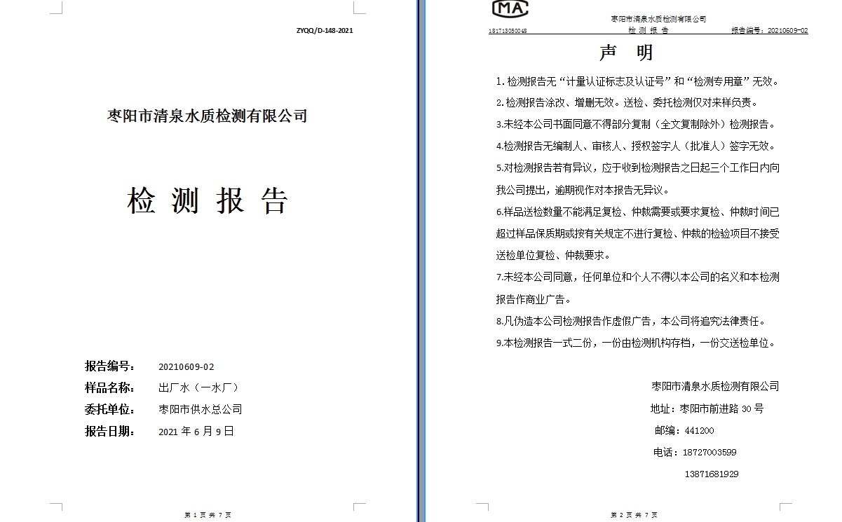通讯员: 枣阳市清泉水质监测有限公司