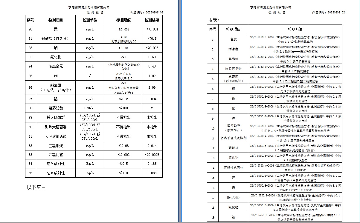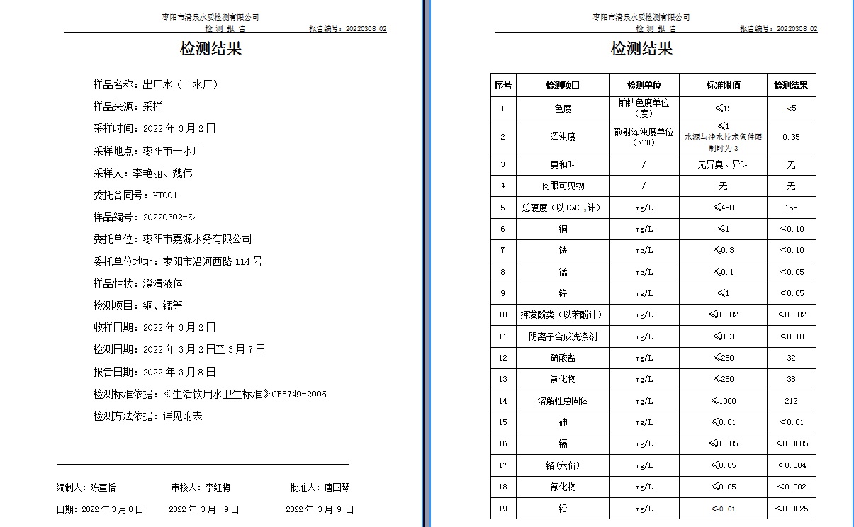 源水检测报告