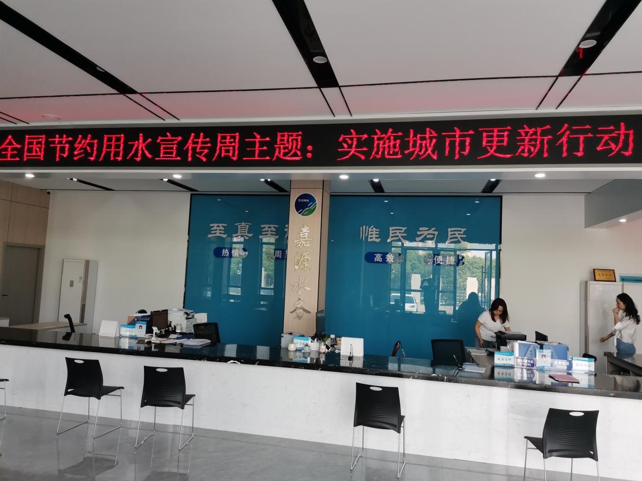 本次活动采取“线上 线下”双渠道模式,公司利用办公楼、收费大厅、客服大厅等4处LED显示屏,滚动播放节水宣传周主题和节水标语;制作节水宣传周海报3块,分别张贴在2个收费大厅和客户服务中心,提醒前来缴费和报装的客户;制作节水宣传横幅,悬挂于2座水厂外醒目处;在公司网站转载住建部、国家水协、全国节水办制作的节水短视频和漫画,营造人人知晓、个个参与的节水氛围。
