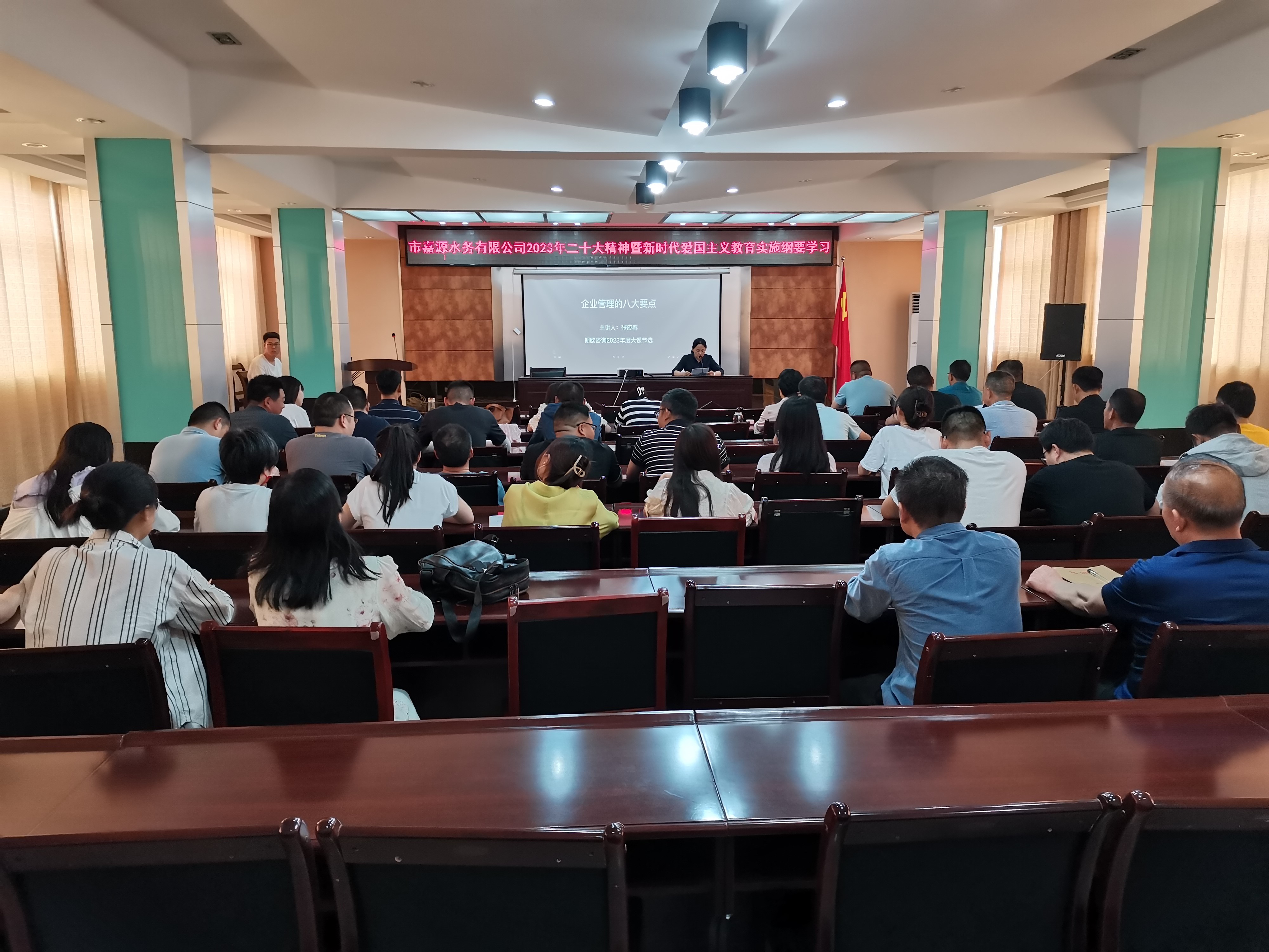 本次学习的主要内容为党的二十大精神暨新时代爱国主义教育实施纲要。大家共同学习了二十大报告第十一部分——《推动绿色发展,促进人与自然和谐共生》和《新时代爱国主义教育实施纲要》,同时学习了《致广大市民参与爱国市域社会治理现代化试点城市创建的一封信》《襄阳市创建全国市域社会治理现代化试点城市应知应会十问》等相关内容,并观看了视频《企业管理的8个要点》。