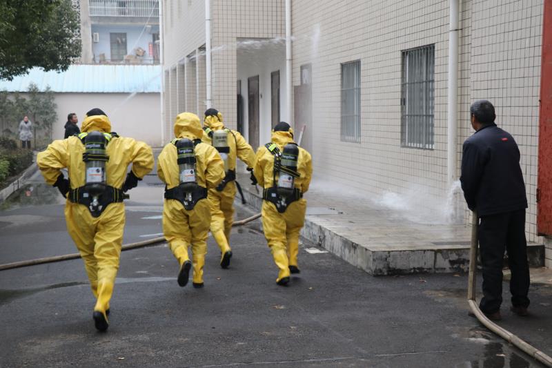 该厂立即启动应急救援预案。2名手持消防水枪的工作人员对加氯车间门窗喷洒制造水幕,中和外溢氯气防并止继续扩散;4名身穿防化服、头戴防毒面具、背负氧气瓶的救援人员迅速集结,鱼贯进入加氯车间,展开救援和对泄漏氯瓶的安全处置工作……这是枣阳市供水总公司组织开展的一次模拟液氯泄漏安全救援演练。